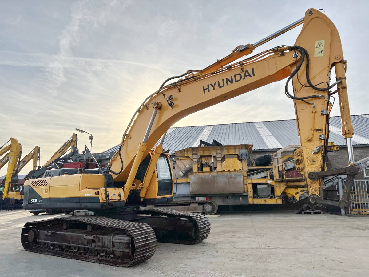 This Hyundai R380LC-9 Excavator from 2012 has an engine power of 202 kW and counts 14890 operational hours. Always worked in The Netherlands. Bought from the first owner. The total weight of this Hyundai R380LC-9 is 38875 kg and the dimensions are 11.40 x 3.51 x 3.70. Furthermore, this R380LC-9 is equipped with Heated Seat , Camera, Radio, Air Conditioning, Extra hydraulic function, Hammer function. The Hyundai Excavator also has a CE marking