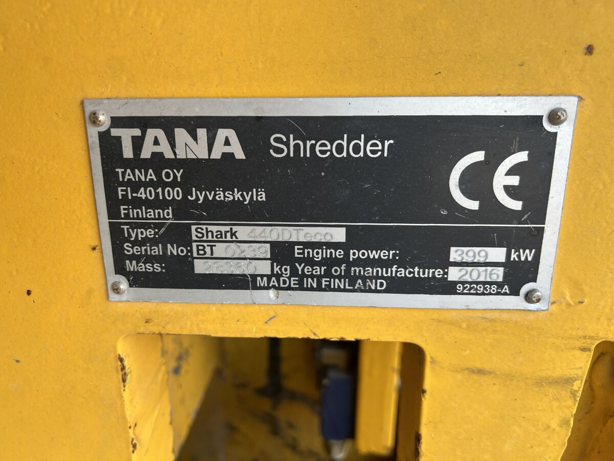 This Tana Shark 440DT Eco Crushers from 2016 has an engine power of 399 kW and counts 11420 operational hours. Always worked in The Netherlands. The total weight of this Tana Shark 440DT Eco is 28800 kg and the dimensions are 15.80 x 2.90 x 3.50. Furthermore, this Shark 440DT Eco is equipped with . The Tana Crushers also has a CE + EPA marking. Do you want more information or do you want to try the Tana Shark 440DT Eco at our yard? Please let us know.