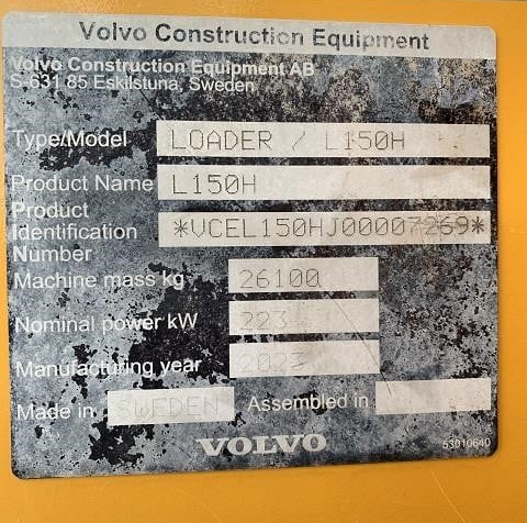 | Description | This Volvo L150H Wheel Loader from 2023 has an engine power of 220 kW and counts 3066 operational hours. The total weight of this Volvo L150H is 26100 kg and the dimensions are 8.95 x 2.95 x 3.55. Furthermore, this L150H is equipped with Air Conditioning, Radio, Camera, AdBlue, Heated Mirrors, Electrical Mirrors, Central greasing, Boom Suspension. |